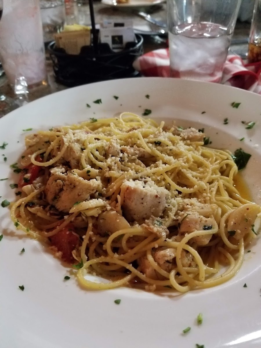 Spaghetti pasta, sautéed in olive oil, garlic, and fresh Italian parsley.